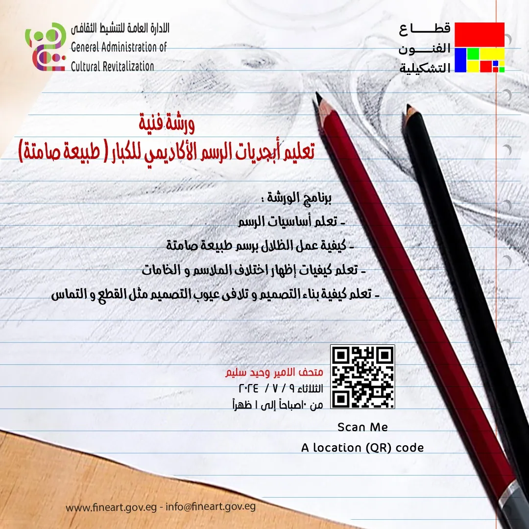 ورشة فنية بعنوان "تعليم أبجديات الرسم الأكاديمي للكبار طبيعة صامتة"