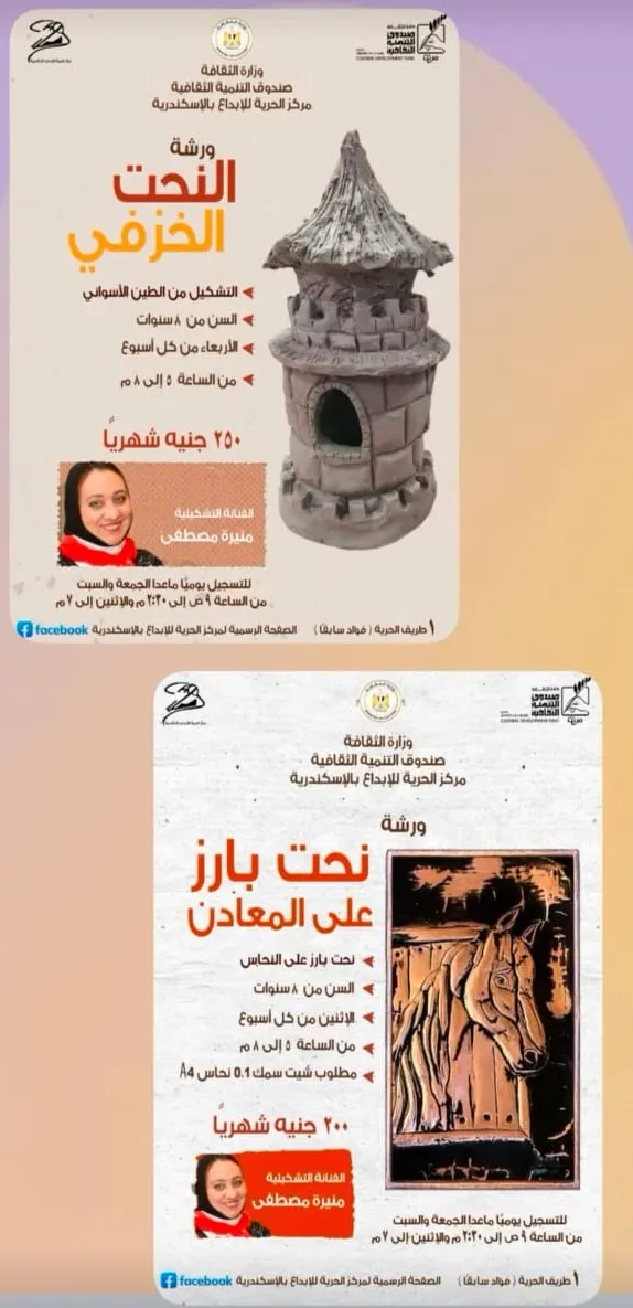 ورشة نحت بارز ورشة النحت الخزفي من مركز الحرية للإبداع بالإسكندرية .