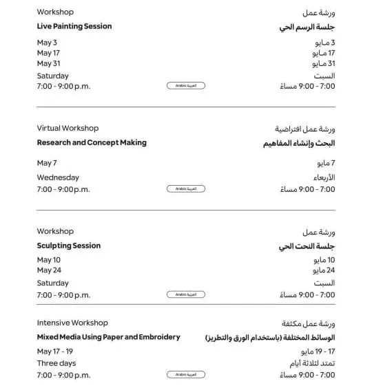جدول فاعليات مسك للفنون لشهر مايو ٢٠٢٥