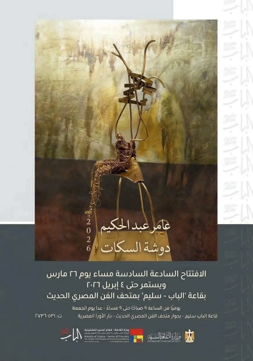 الافتتاح الساعة السادسة مساء يوم ٢٦ مارس ويستمر حتى 9 إبريل ٢٠٢٦ بقاعة "الباب - سليم" بمتحف الفن المصري الحديث يوميا من الساعة 9 صباحًا حتى 9 مساءً - عدا يوم الجمعة قاعة الباب سليم - بجوار متحف الفن المصري الحديث - دار الأوبرا المصرية ت: ٢٧٣٦٠٥٣١ وزارة الثقافة القطاع الفنون التشكيلية Ministry of Culture Sector of Fine Arts وزارة الثقافة المصرية