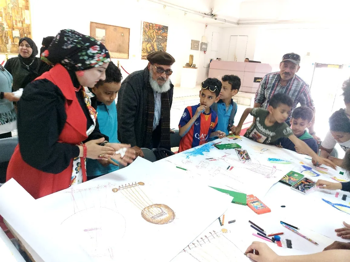 قطاع الفنون التشكيلية بمناسبة اليوم العالمي للتراث ورشة بعنوان [السمسمية ] إشراف : هالة السيد حامد - موجه تربية فنية يتم تشكيل ورسم شكل السمسمية ومعرفة الطلبة معلومات عن هذه الاله الشعبية لمحافظة بورسعيد الخميس ٢٠٢٤/٤/٢٥ - ١١ ظهرا متحف النصر للفن الحديث محافظة بورسعيد www.fineart.gov.eg info@fineart.gov.eg التنشيط الثقافي