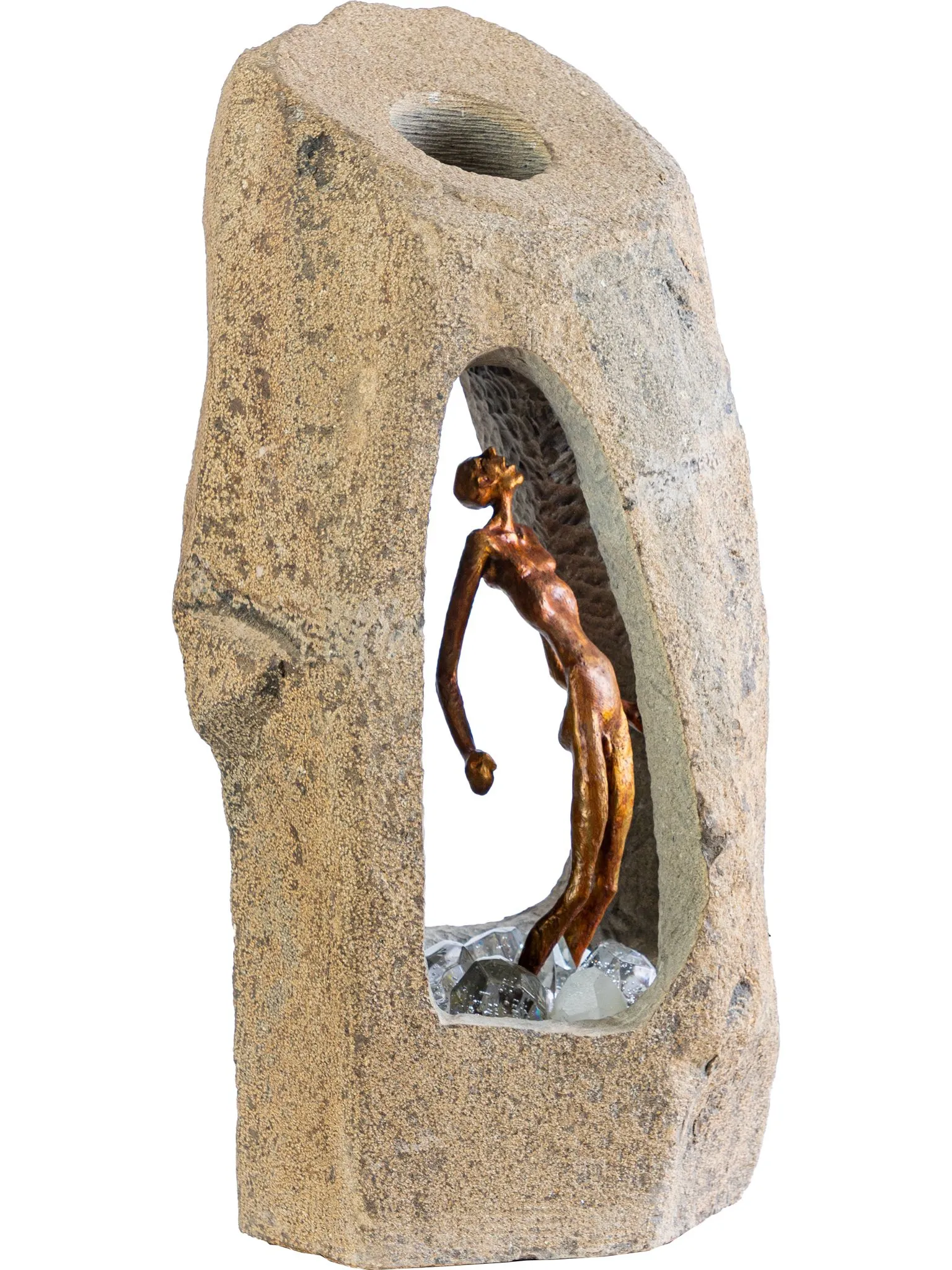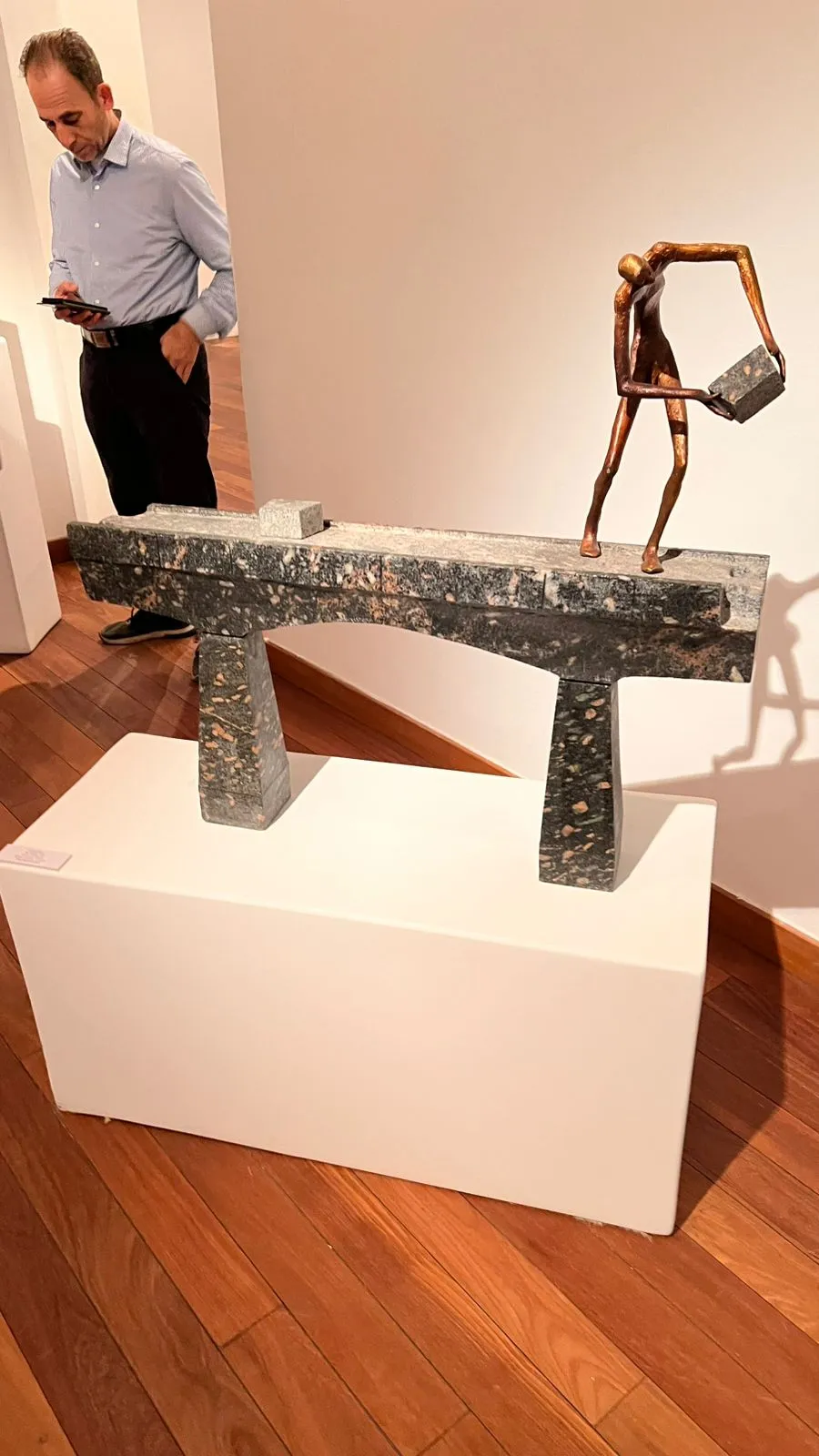 يستعيد فنان النحت المصري ناثان دوس في معرضه "إلى العمق" بجاليري "الزمالك للفن" في القاهرة، ملامح من العصور السحيقة والحضارات القديمة، عبر تماثيل تتبع مسارات ميلاد البشر والجذور الأولى للحياة وما ارتبط بذلك من أساطير كبرى شكّلت وعي الإنسان بشكل مبكر. تتنوع موضوعات المعرض لتشمل صراعات إنسانية أزلية، لا سيما بين الخير والشر، مع مفاهيم الكفاح والبحث عن الحقيقة، وصولاً إلى أثر القوانين والشرائع على النفس البشرية، على نحو بدا معه المعرض وكأنه يعيد صياغة التاريخ الإنساني من خلال "مشاهد يومية" محمّلة بالفلسفة. يضم المعرض أكثر من 20 عملاً، خاض من خلالها الفنان تحديًا مع خامات شديدة الصلابة مثل الكوارتز والديوريت، بالإضافة إلى البرونز، مع رد الاعتبار للمرأة كرمز للخصوبة والولادة في التاريخ القديم. كما نجح في تحدي تحويل الأحجار القاسية إلى رموز ناطقة بالفلسفة، ليمنح منحوتاته بعدًا تاريخيًا وفكريًا يتجاوز مجرد الشكل الجمالي. يضم المعرض مجموعة من التماثيل التي تجمع بين التاريخ والأسطورة بلمسة عصرية ومن أبرزها تمثال للملك أخناتون، الذي قدمه الفنان "ناثان دوس" كتحية لافتتاح المتحف المصري الكبير واحتفاءً بالهوية المصرية. كما يقدّم الفنان معالجة مختلفة لأسطورة "سيزيف" اليونانية الشهيرة التي تركز على فكرة العذاب الأبدي في تدحرج الصخرة التي يصعد بها إلى الجبل ثم تسقط ثم يصعد بها مجددا، في دورة لا تنتهي من المعاناة. ويظهر "سيزيف" في هذا العمل وهو ينجح في تثبيت صخرته فوق الجبل، ممسكًا بهاتفه المحمول ليلتقط صورة "سيلفي" مع إنجازه، في إشارة رمزية لمشاركة الإنجازات التي قد تبدو مستحيلة عبر وسائل التواصل الاجتماعي ZAMALEK ART GALLERY ناثان دوس Nathan Doss إلى العمق Into the e Depth Depth من ۲۹ مارس إلى ١٢ إبريل ٢٠٢٦