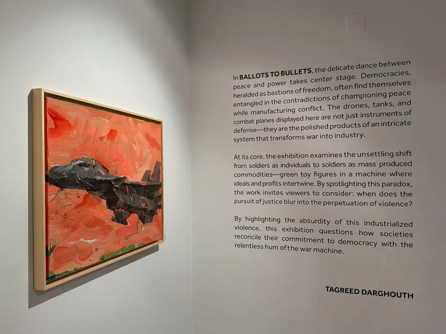 Gallery Misr is delighted to invite you to the opening of the painting exhibition “BALLOTS TO BULLETS” by the renowned Lebanese artist TAGREED DARGHOUTH. Opening Date: Sunday, February 2, 2025, at 6:00 PM. Exhibition Duration: Until February 20, 2025. Location: 4A Ibn Zinky, off Hassan Sabry Street, Zamalek, Cairo. For any further inquiries, please contact us on Instagram: @gallerymisr. We look forward to seeing you!