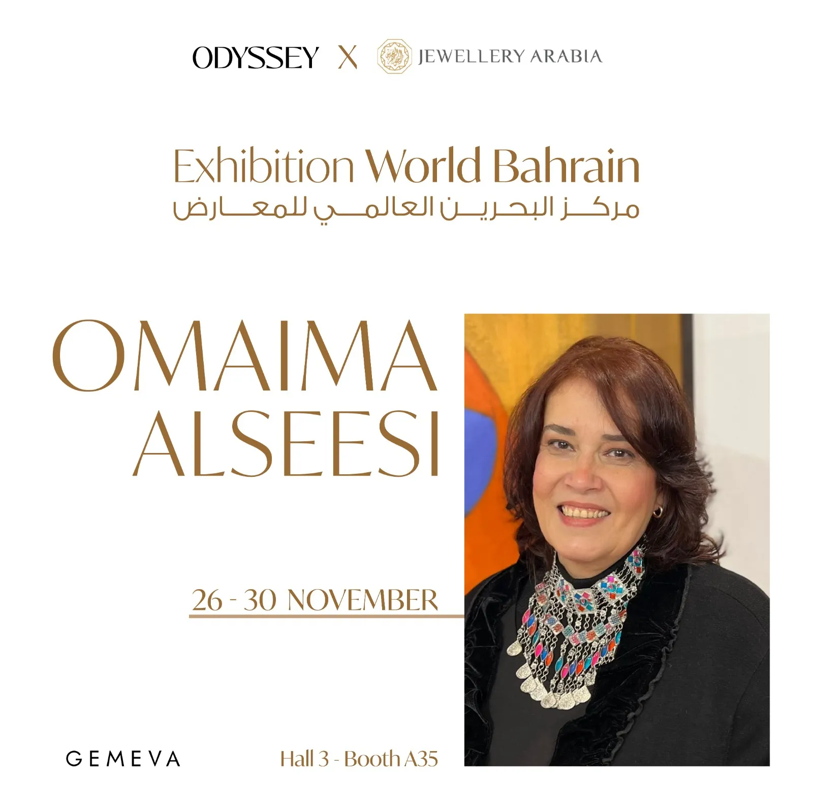 We are thrilled to be part of Official Jewellery Arabia under Gemeva at Exhibition World Bahrain in Gemeva Hall 3 – Booth A35, from November 26th to 30th, 2024