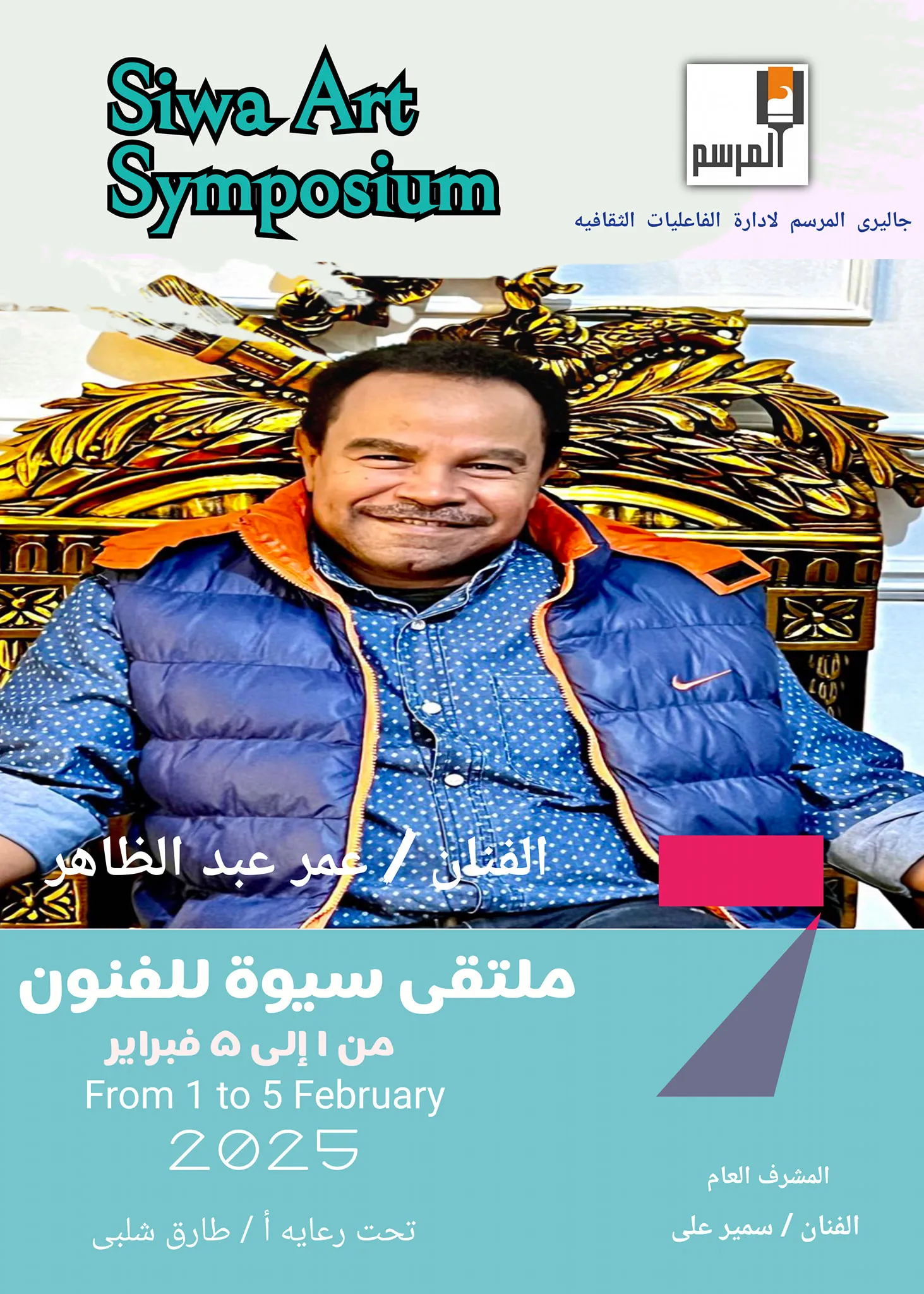 From 1 to 5 FebruaryFrom 1 to 5 February 2025General SupervisorArtist / Samir AliUnder the patronage of Mr. / Tarek Shalaby