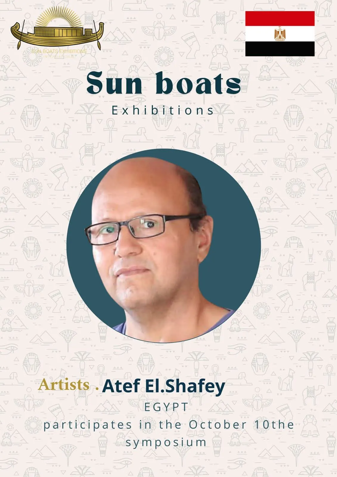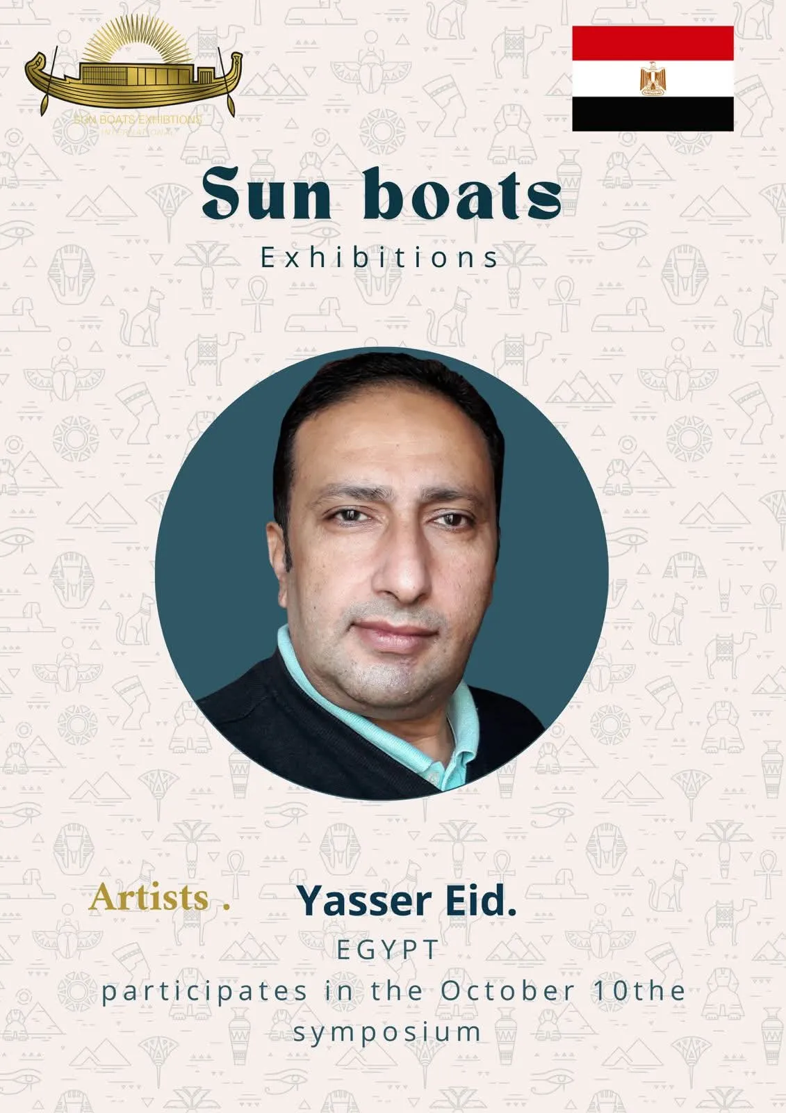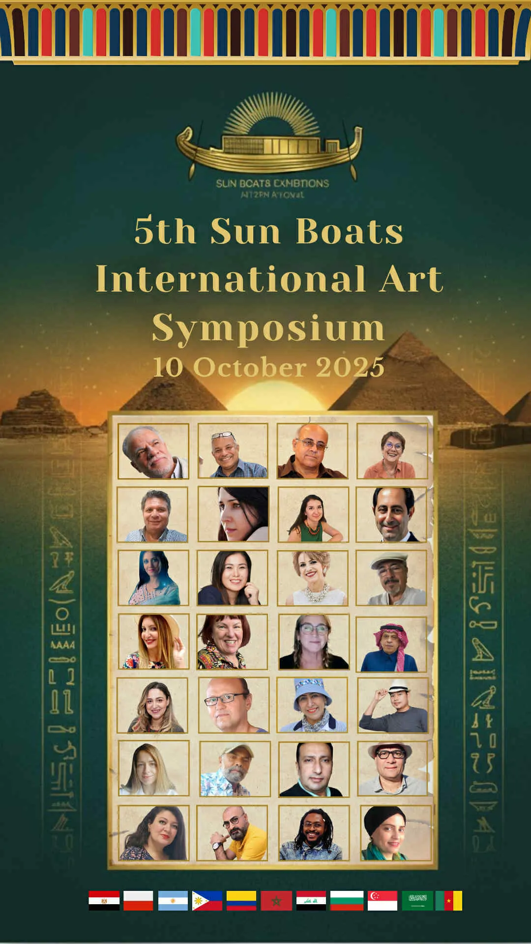 We are delighted and honored to welcome the talented artists from around the world to participate in the 5th Sun Boats International Art Symposium! Welcome to Egypt, the land of ancient civilization, artistic creativity, and inspiring history. Through this event, we aim to create a space for inspiration, exchange of experiences, and strengthening cultural connections among artists from all corners of the world The coming days will be filled with inspiring artistic encounters, innovative workshops, and exhibitions showcasing the finest artworks, offering a unique experience that reflects the diversity and elegance of creativity. We look forward to sharing your artistic stories, inspiring ideas, and creations that enrich the global art scene, and we hope this journey will be an unforgettable experience for all participating artists and visitors alike.