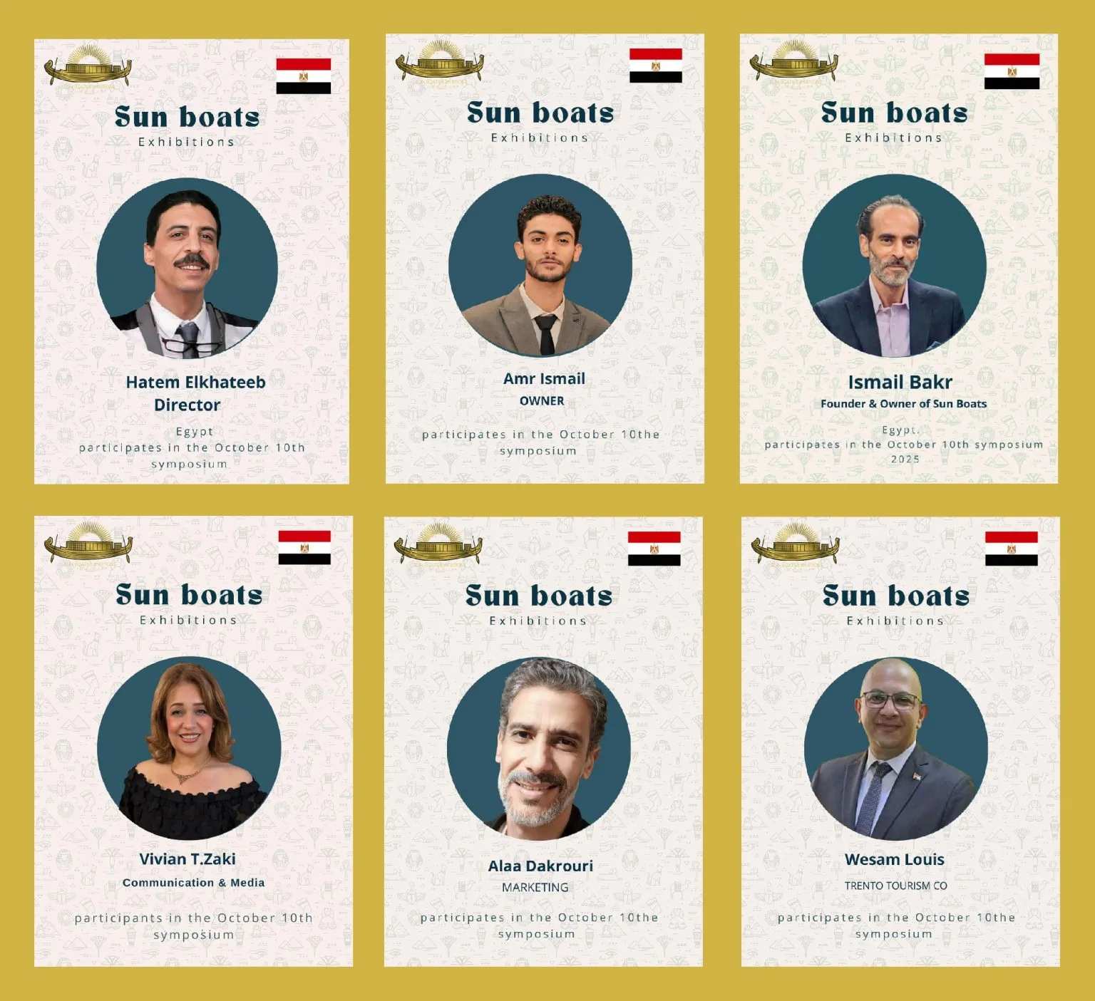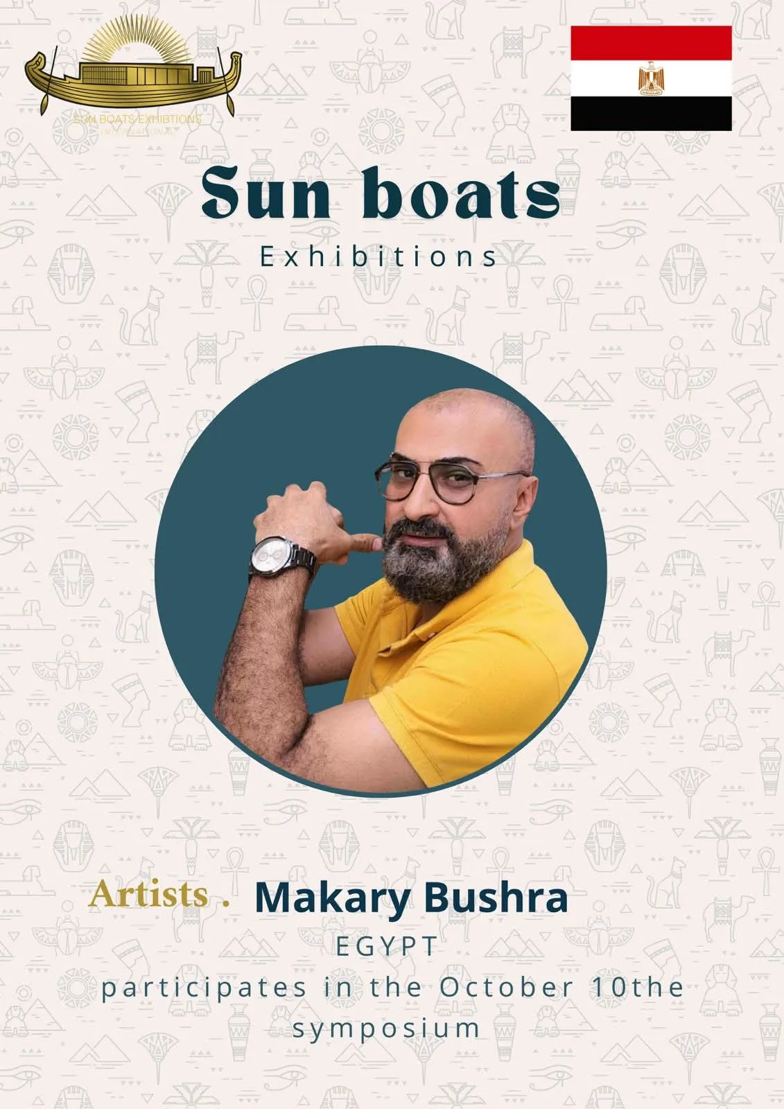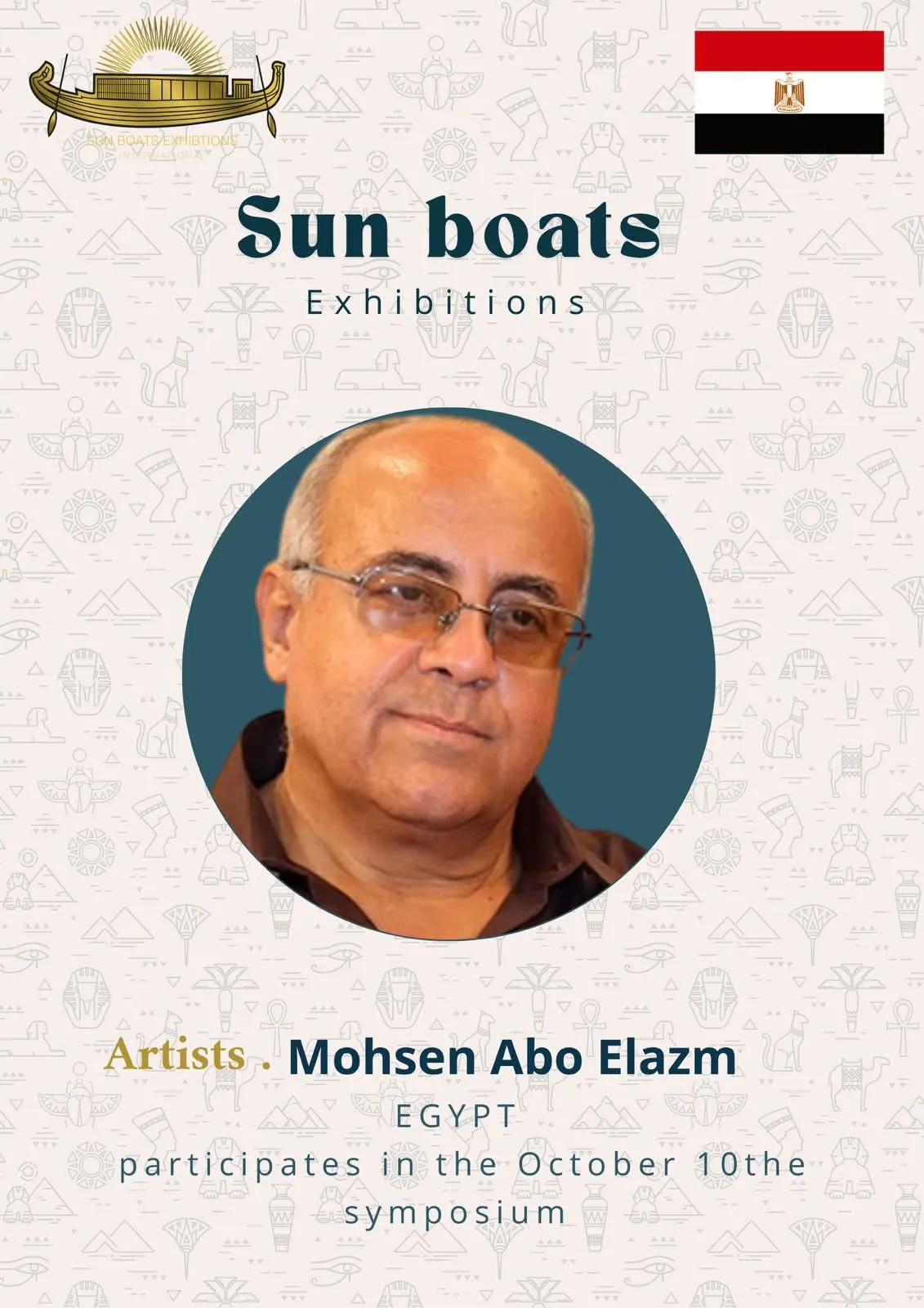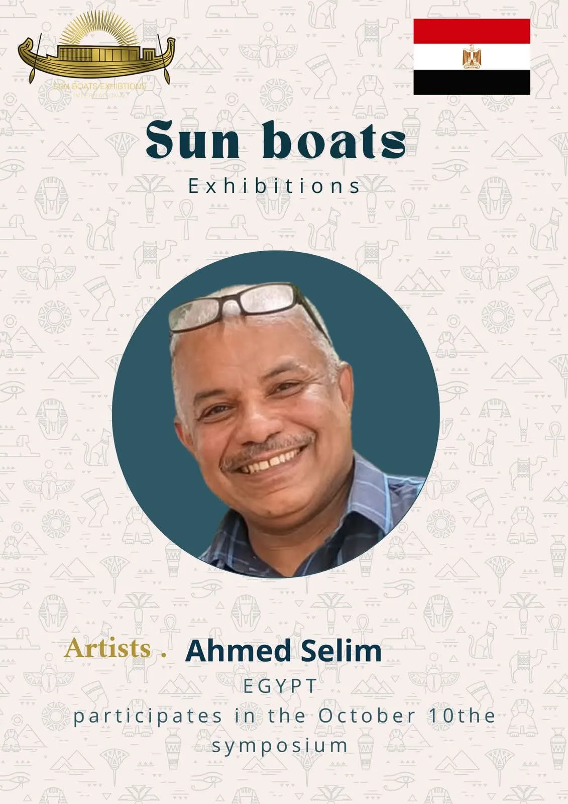 We are delighted and honored to welcome the talented artists from around the world to participate in the 5th Sun Boats International Art Symposium! Welcome to Egypt, the land of ancient civilization, artistic creativity, and inspiring history. Through this event, we aim to create a space for inspiration, exchange of experiences, and strengthening cultural connections among artists from all corners of the world The coming days will be filled with inspiring artistic encounters, innovative workshops, and exhibitions showcasing the finest artworks, offering a unique experience that reflects the diversity and elegance of creativity. We look forward to sharing your artistic stories, inspiring ideas, and creations that enrich the global art scene, and we hope this journey will be an unforgettable experience for all participating artists and visitors alike.
