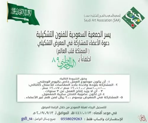 4- The artist’s membership must be valid. 5 - Participation in the exhibition costs 200 riyals for those who are not members. To register, please fill out the form through the attached link