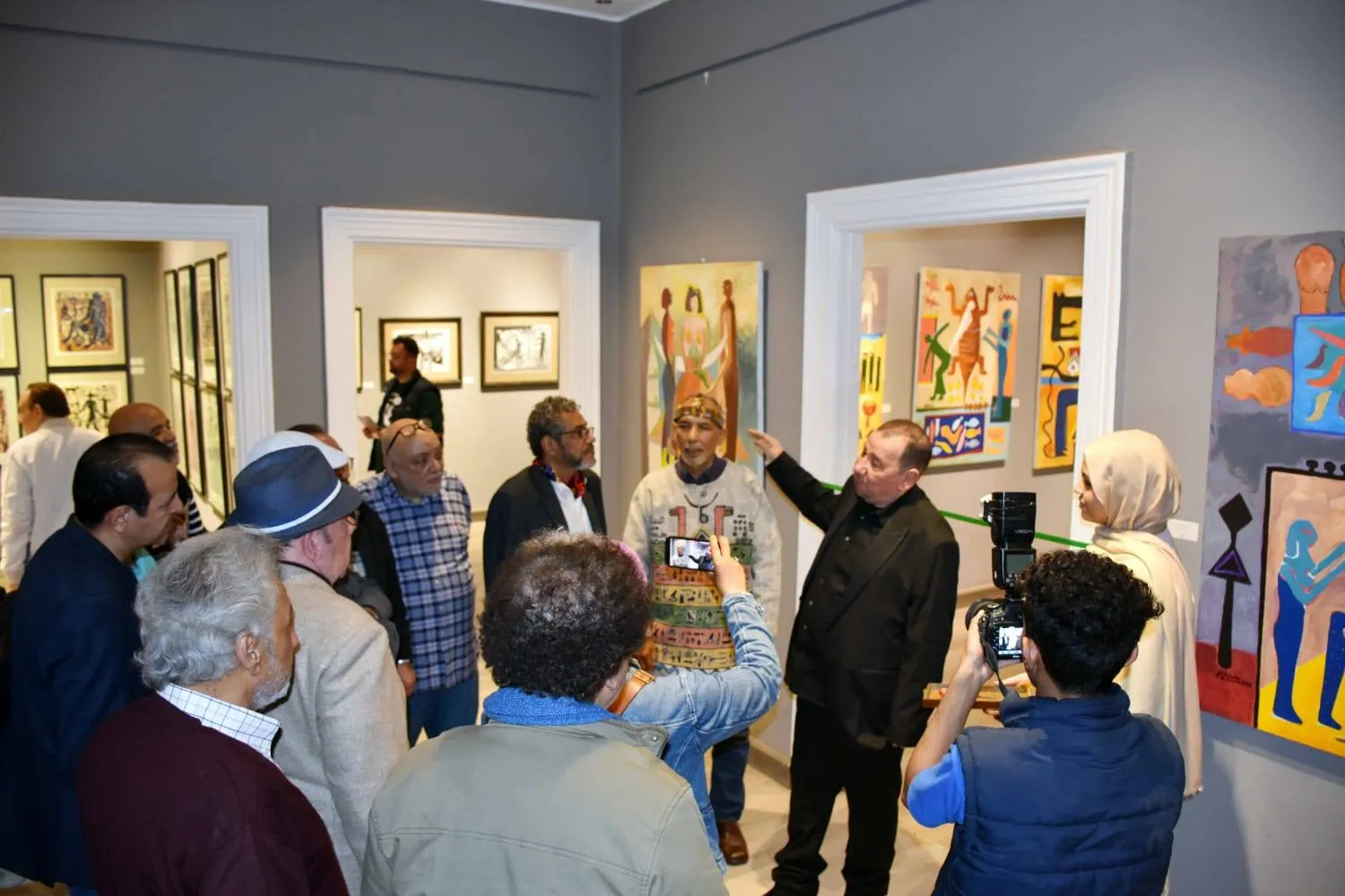 The opening was attended by a host of artists and critics, including artists and professors Khaled Sorour, Ahmed Abdel-Karim, Shams El-Qarnafli, Sami El-Balshy, Adel Tharwat, Magdy Anwar, Adel Kabida, Osama Nashed, Nader Helal, Nasan Doss, Ibrahim El-Buraidi, media personality Marwa Ezz El-Din, Saudi journalist Abdullah Al-Jumaili, Wahba El-Attar, Ehab El-Asyuti, Sohair Othman, Magda Ali, Nermin Hakim, Emal El-Basha, Nemat El-Dweiry, Mohamed Hesham, Hassan Daoud, poet Saadni El-Salamouni, Samir Abdel-Ghani, Samir Abdel-Fadil, Maha Abdel-Karim, and media personality Tarek Abdel-Fattah.