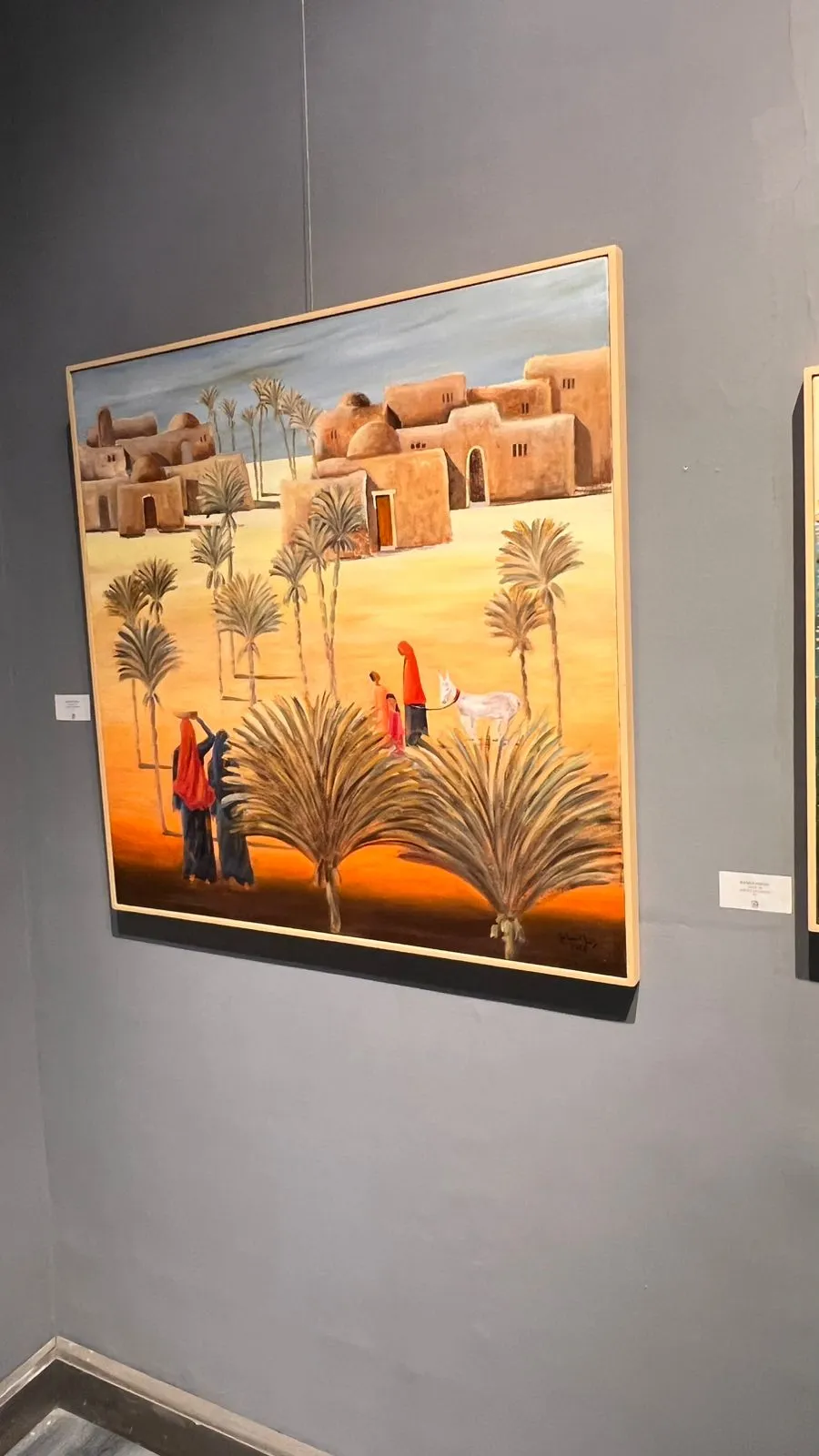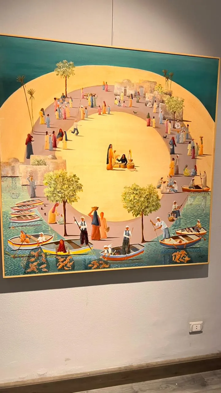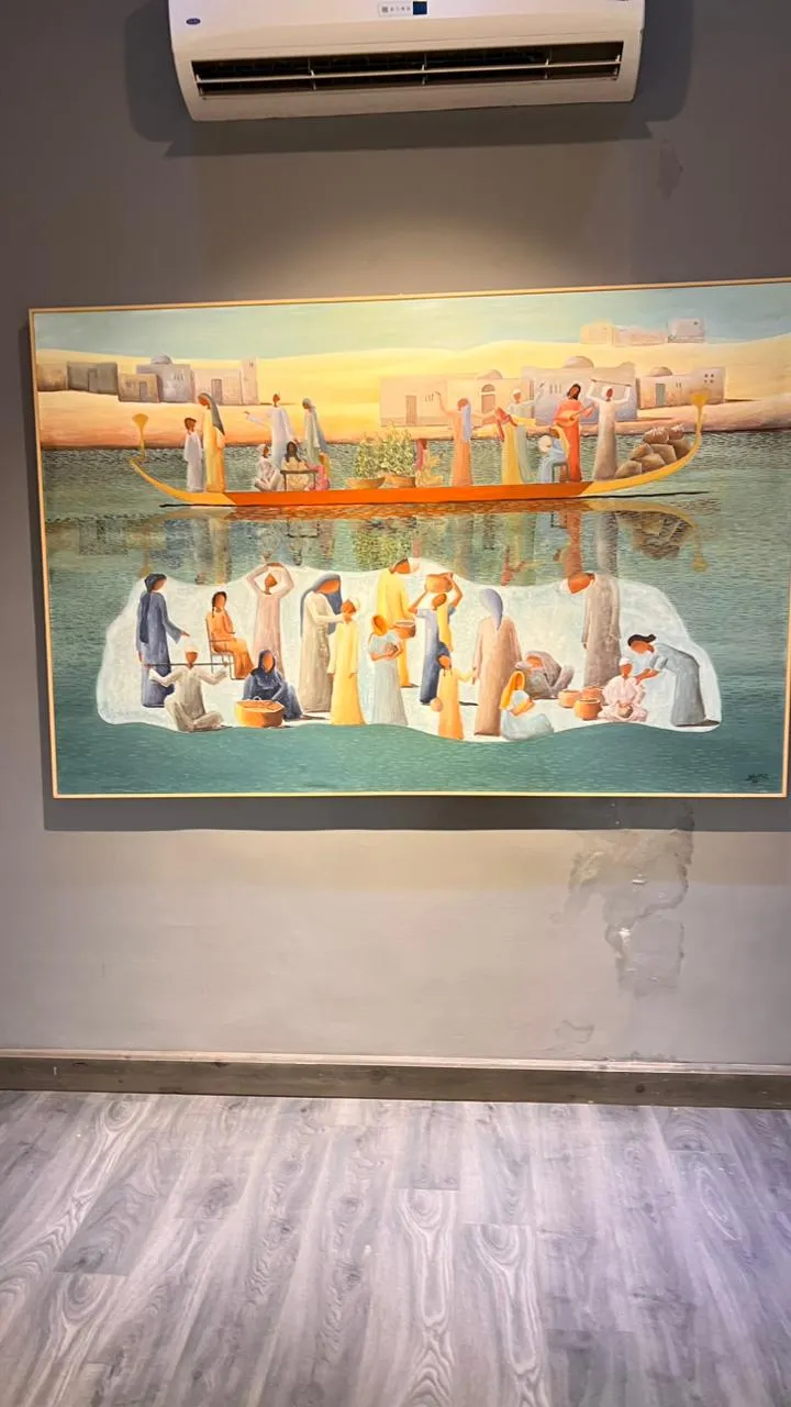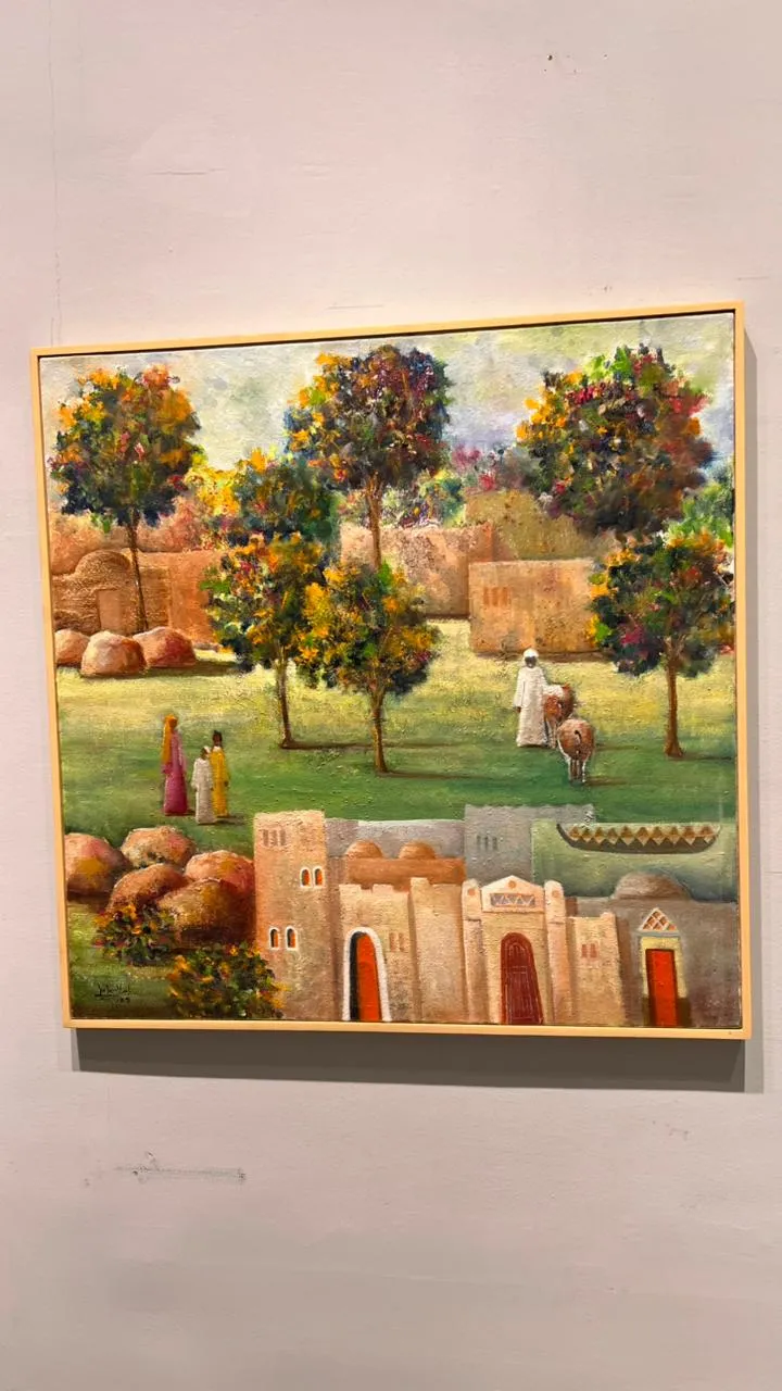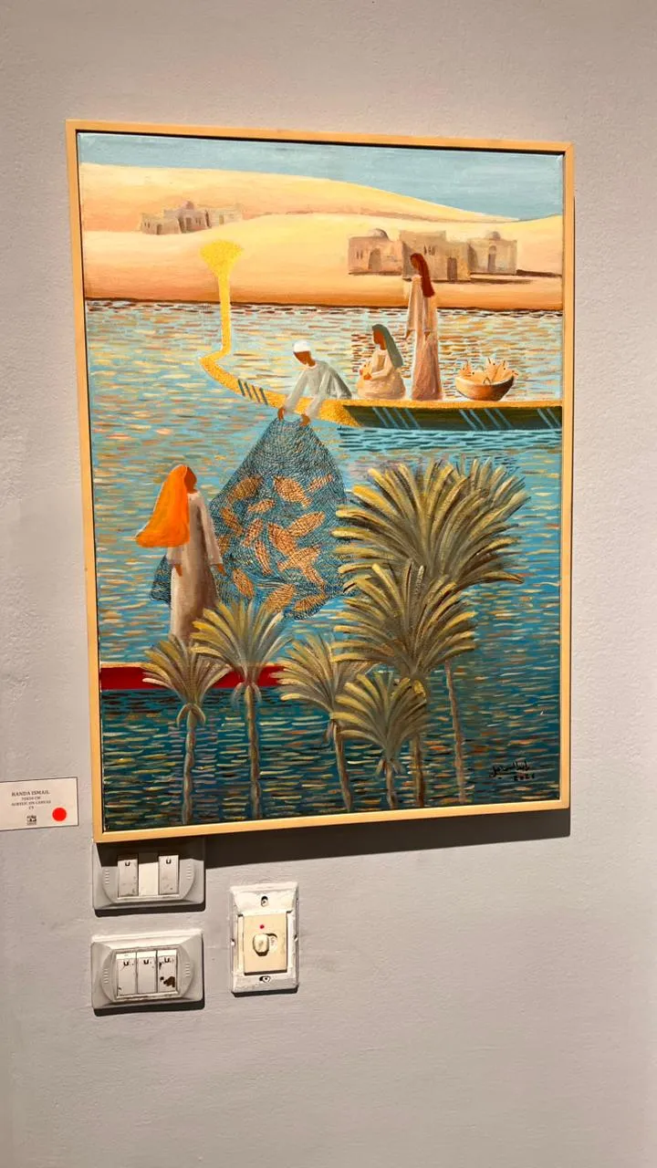 The exhibition features fifty new paintings by Randa Ismail in various sizes, drawing inspiration from the Egyptian environment, particularly the oases and Nubia, with their houses, decorations, breathtaking nature, and the simplicity of their people. Her art generally addresses human and social issues.