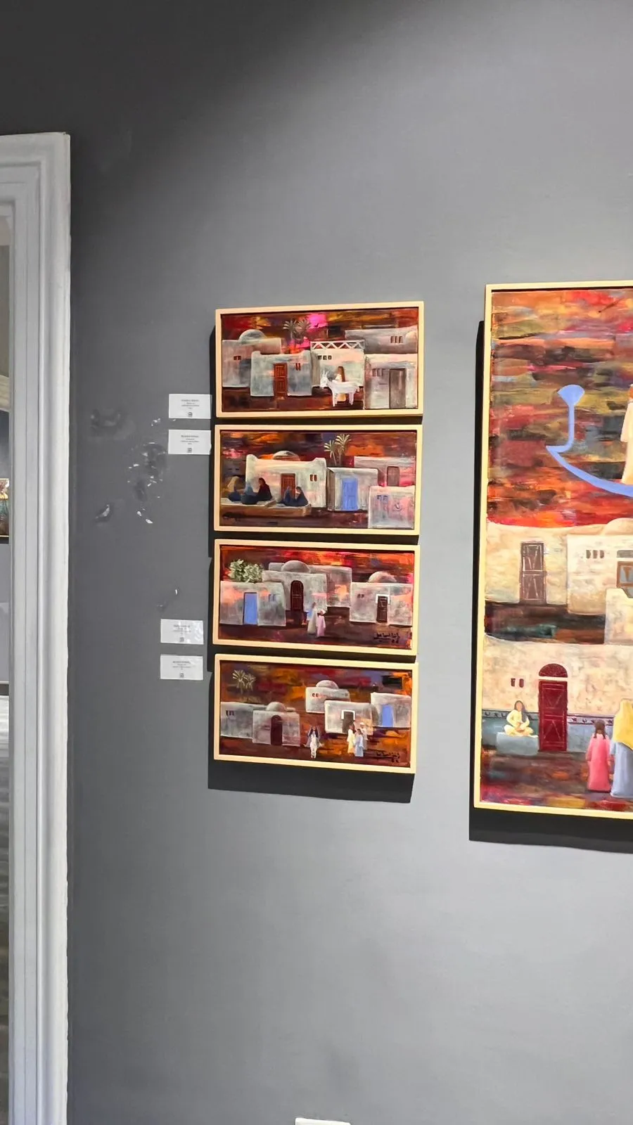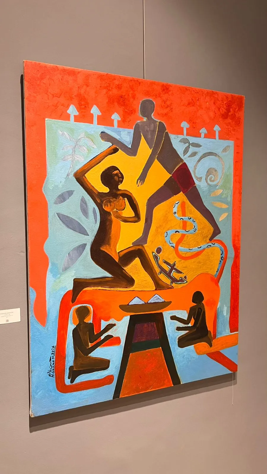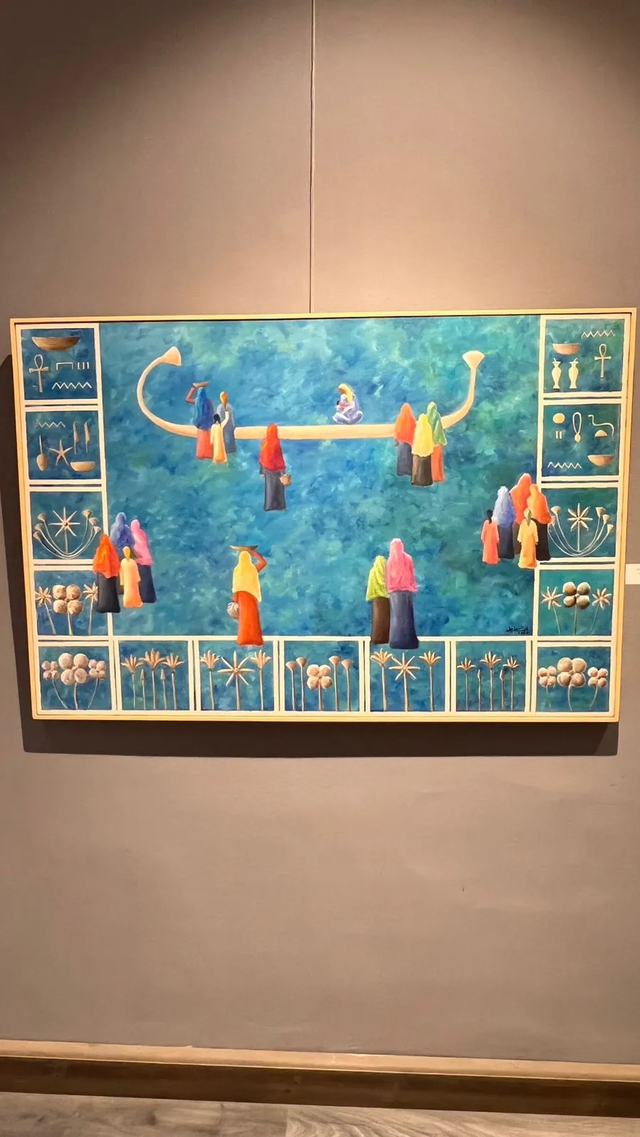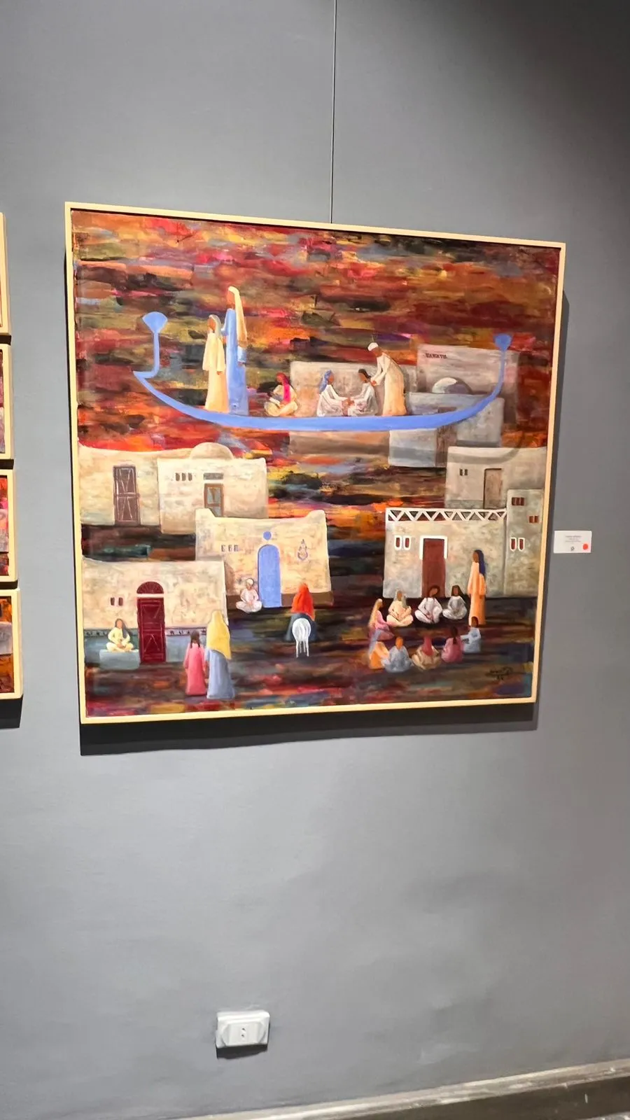 The exhibition features fifty new paintings by Randa Ismail in various sizes, drawing inspiration from the Egyptian environment, particularly the oases and Nubia, with their houses, decorations, breathtaking nature, and the simplicity of their people. Her art generally addresses human and social issues.