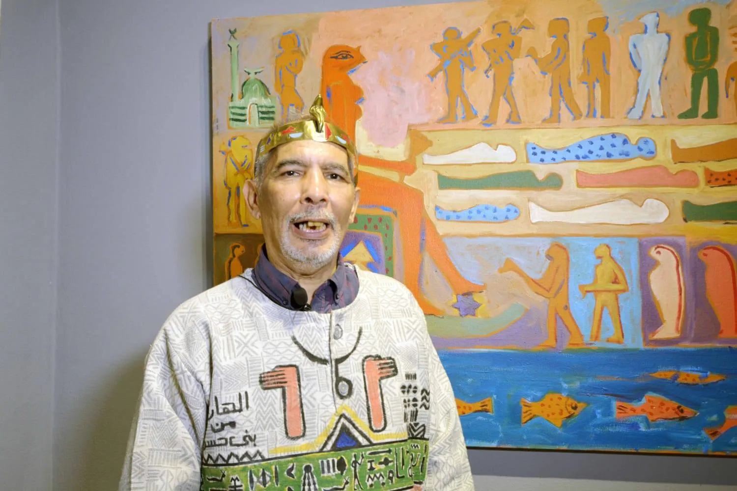 The second exhibition by artist Dr. Hassan Ghanem, titled "The Fugitive from Bani Hassan," features sixty graphic and painting works. Ghanem is a distinguished graphic artist, photographer, and sculptor with numerous participations both in Egypt and abroad.