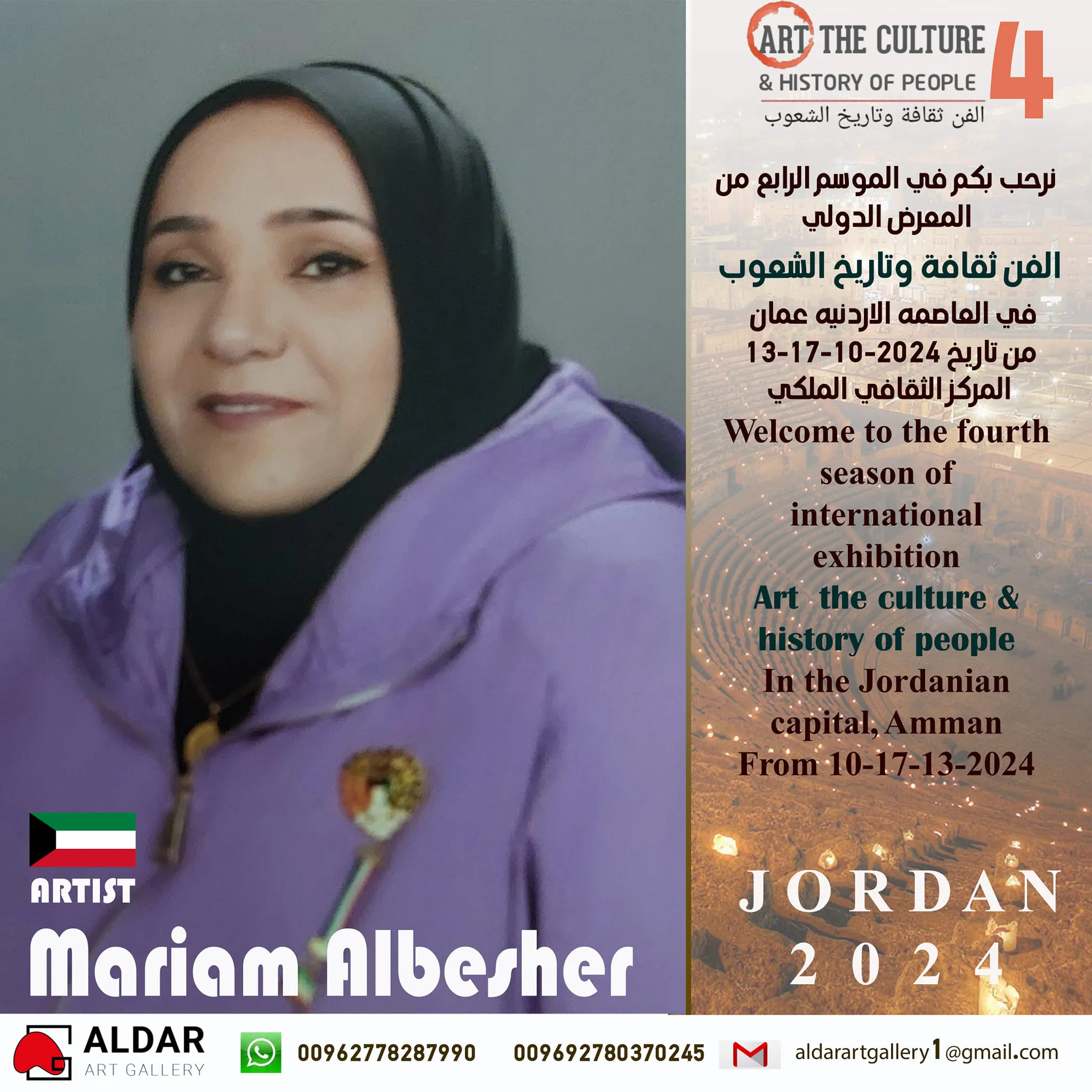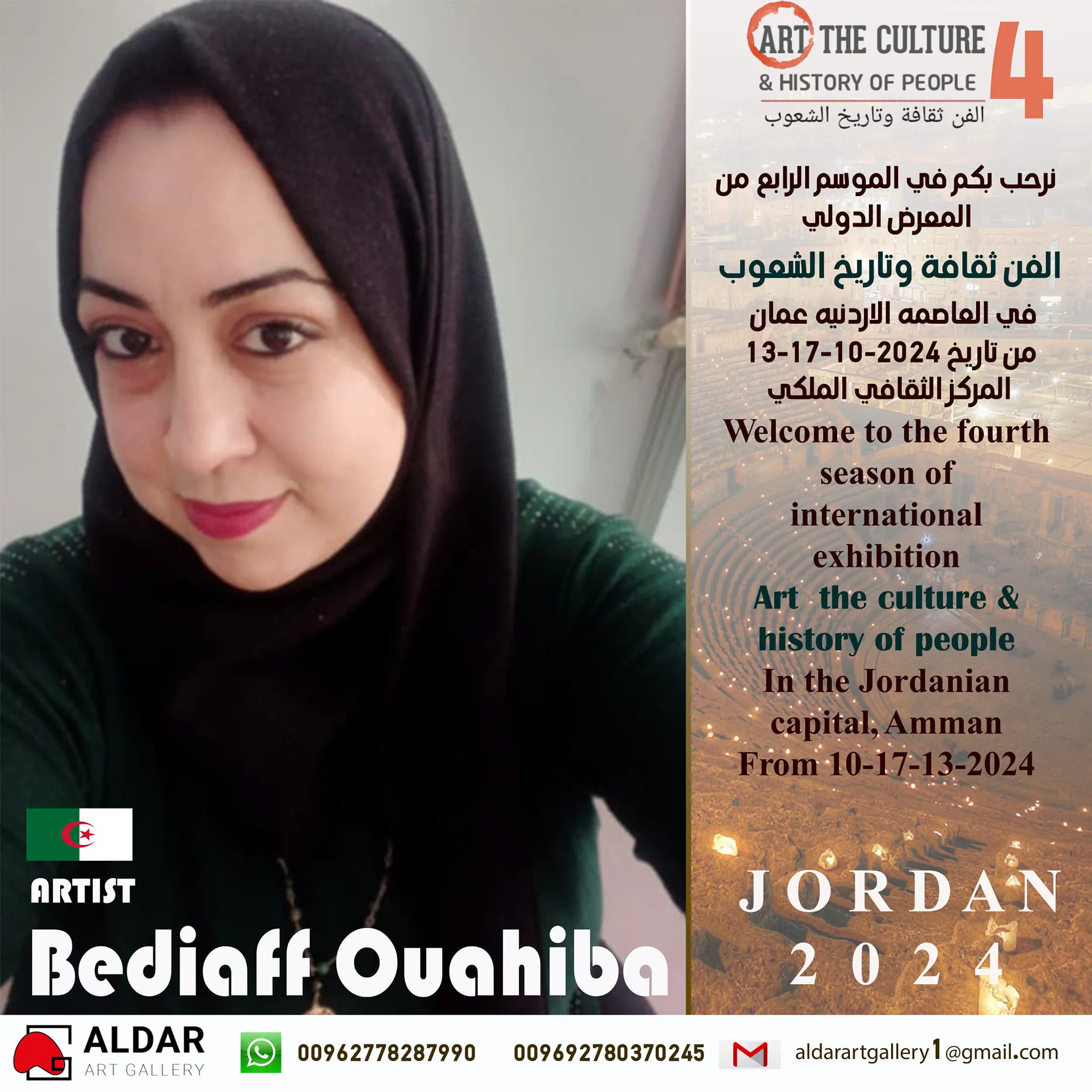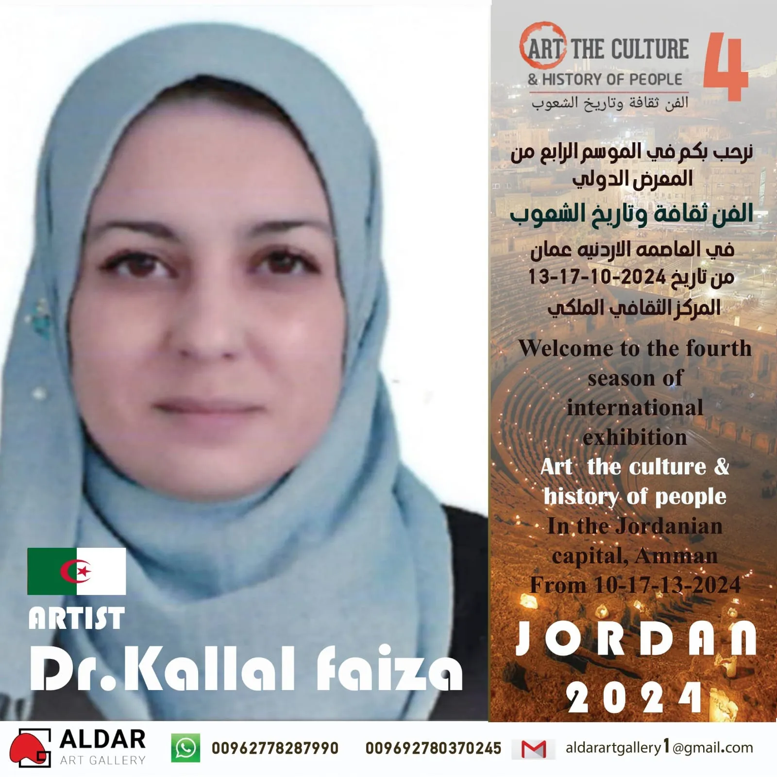Dar Art Gallery Foundation The fourth season of the international exhibition (Art, Culture and History of Peoples) Which will be held in the Hashemite Kingdom of Jordan/Capital Amman at the Royal Cultural Center during the period between 13-17/10/2024